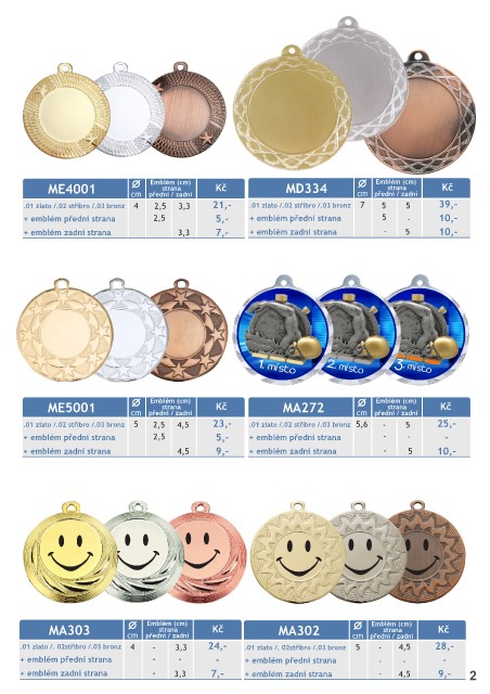 .01 zlato /.02 stříbro /.03 bronz  5      2,5     4,5        23,-  .01 zlato /.02 stříbro /.03 bronz 5,6      -        5         25,-