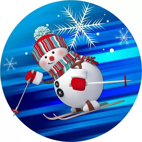 Sportovní barevný emblém v průměru 25 a 50 mm, sněhulák na lyžích.
