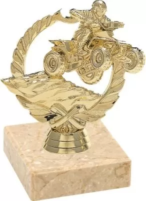 Sportovní figurka čtyřkolky na mramorovém podstavci s možností štítku.