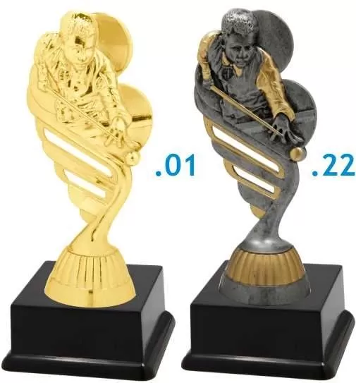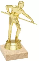 Sportovní figurka kulečníku na plastovém černém podstavci s možností štítku.