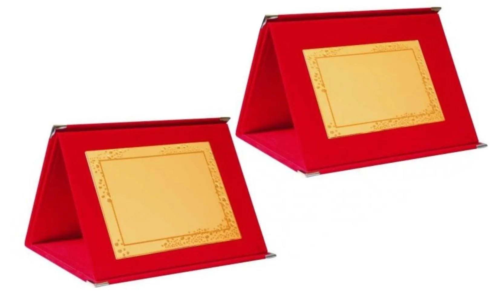 Sportovní plaketa v červené etui zlaté barvy s možností laserového gravírování nebo potisku v ceně.