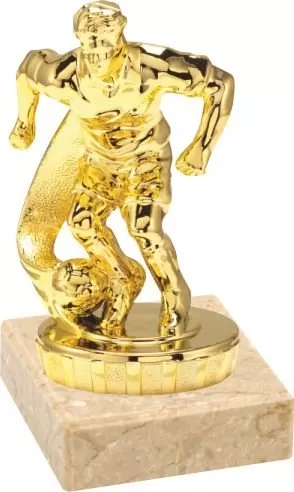 Sportovní fotbalová figurka ve zlaté barvě s možností štítku na mramorovém podstavci.