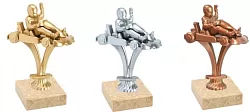 Sportovní figurka s motivem motokáry s možností štítku na mramorovém podstavci ve zlatém provedení.