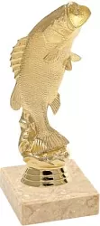 Sportovní rybářská figurka ve zlatém provedení s možností štítku.