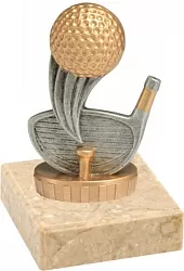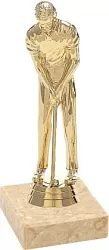 Sportovní golfová figurka na černé plastovém podstavci ve zlatém nebo barevném provedení s možností štítku.