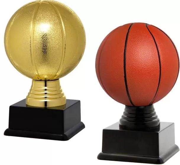 Sportovní basketbalová figurka na černé plastovém podstavci ve zlatém nebo barevném provedení s možností štítku.
