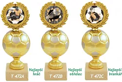 Sportovní fotbalová trofej s možností štítku na mramorovém podstavci s motivem Nejlepší hráč - Nejlepší střelec - Nejlepší brankář.