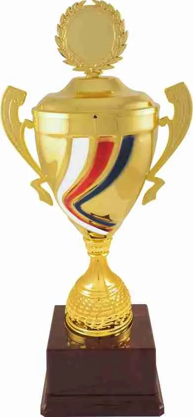 Sportovní luxusní pohár na podstavci v barvě české trikolóry s možností emblému 5 cm, štítku, včetně poklice.