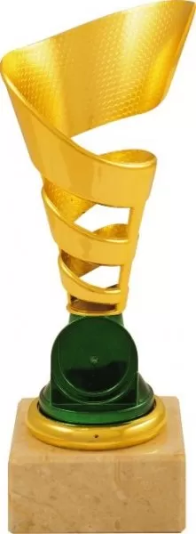 Sportovní pohár s možností emblému 2,5cm a štítku na mramorovém podstavci ve zlato-zeleném provedení.