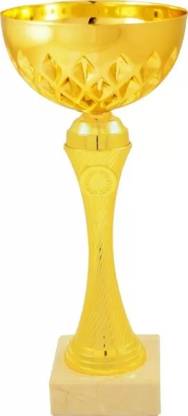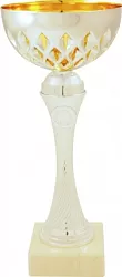 Pohár s diamantově broušeným kalichem a spirálově texturovanou nožkou ve zlatém provedení. Čistý zlatý design s diamantovým vzorem vytváří klasický elegantní vzhled. Mramorový podstavec dodává reprezentativní charakter.