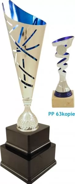Sportovní putovní pohár s dvojitým plastovým podstavcem s možností průběžného doplňování štítků ve stříbrno-modré barvě. Možnost zakoupení pamětní kopie putovního poháru. Do kopie je emblém 2,5 cm.