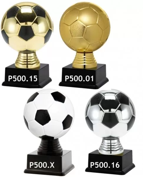 Sportovní fotbalová trofej na černé plastovém podstavci ve zlatém, stříbrném nebo barevném provedení s možností štítku.