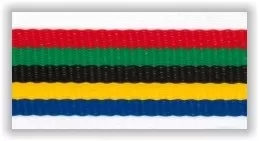 Stuha včetně karabinky v olympijských barvách.