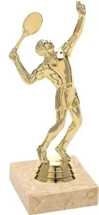 Sportovní figurka tenisty na mramorovém podstavci s možností štítku.