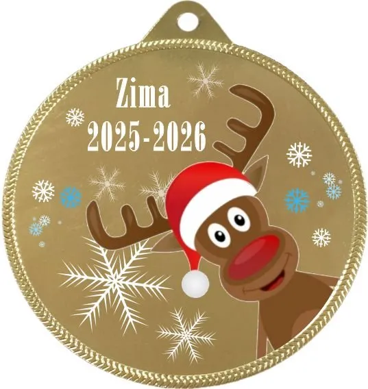 Sportovní kovová medaile ve zlatém provedení se zimním motivem soba s možností emblému na zadní stranu medaile a stuhy pro rok 2025-26.