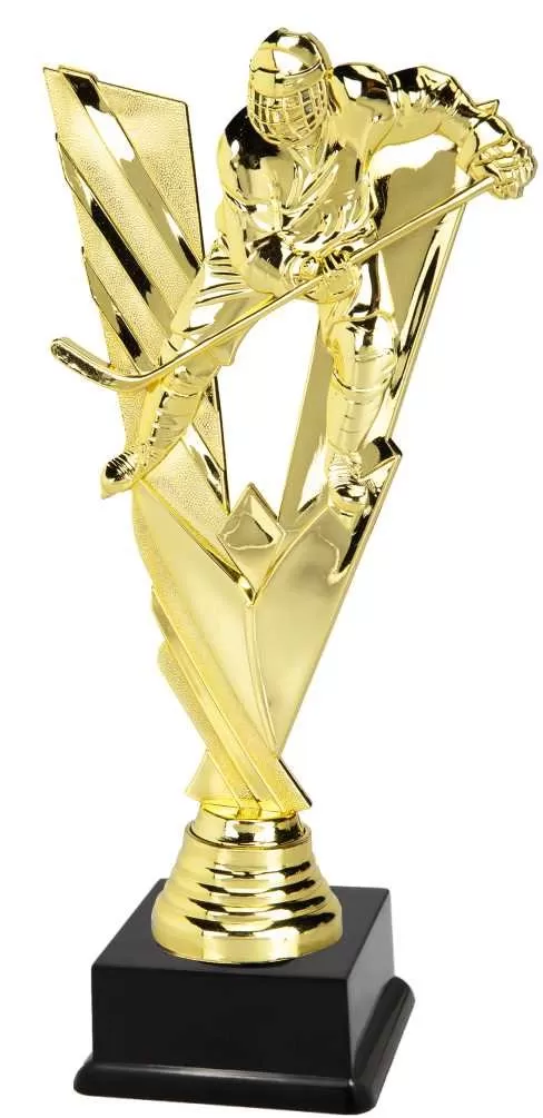 Sportovní hokejová figurka na černé plastovém podstavci s možností štítku ve zlatém provedení.
