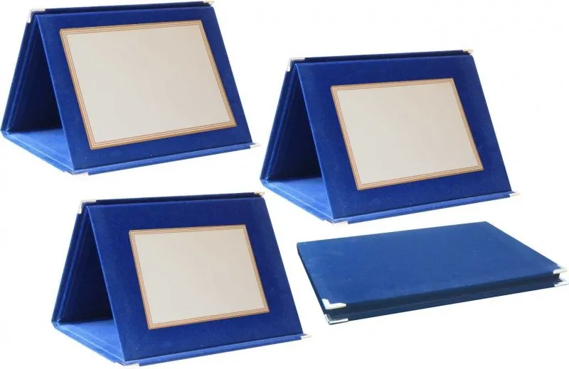 Sportovní plaketa v modré etui s kovovou plaketou stříbrné barvy s možností laserového gravírování nebo potisku v ceně.