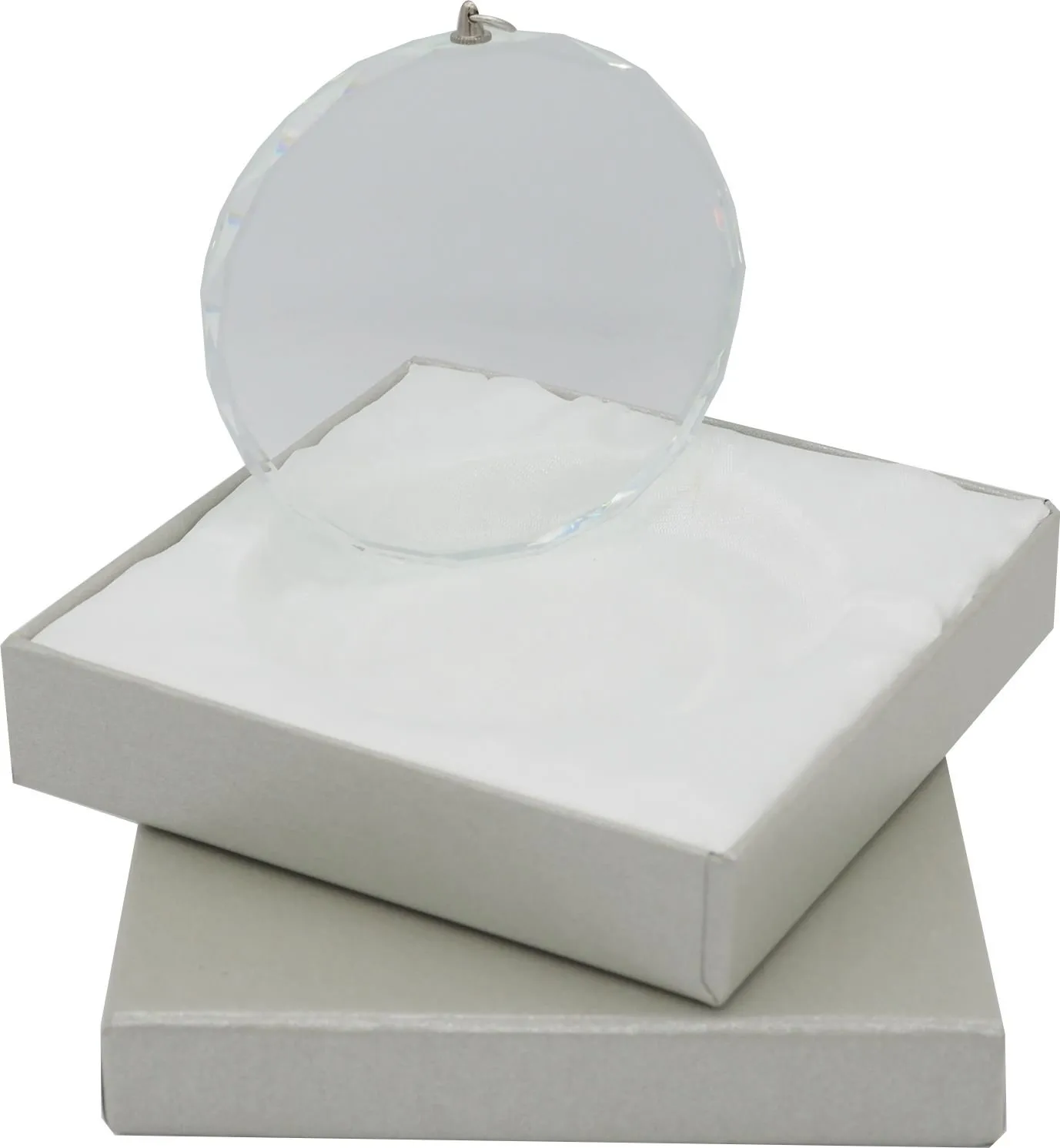 Skleněná medaile včetně dárkové krabičky s možností libovolné stuhy.