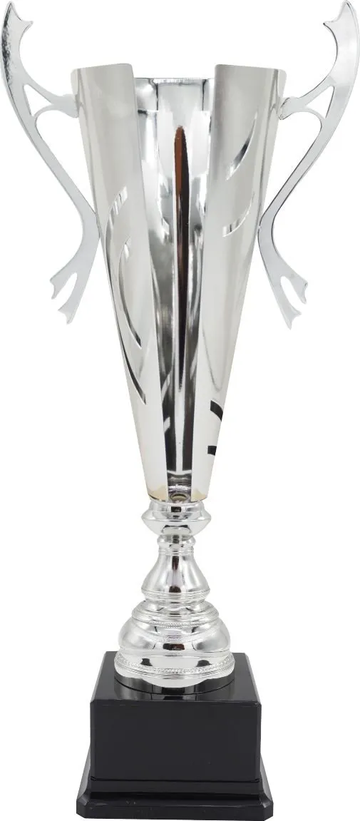 Sportovní luxusní pohár na černém plastovém podstavci s možností štítku ve stříbrném provedení.