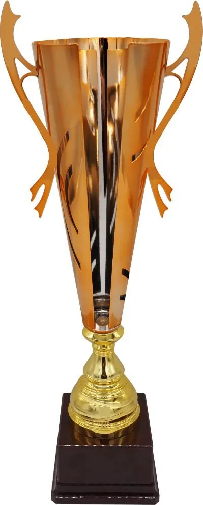 Sportovní luxusní pohár na hnědém podstavci s možností štítku v bronzovém provedení.