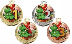 Sportovní veselá hasičská medaile s možností emblému na zadní stranu medaile a libovolné stuhy v provedení zlato, stříbro a bronz.