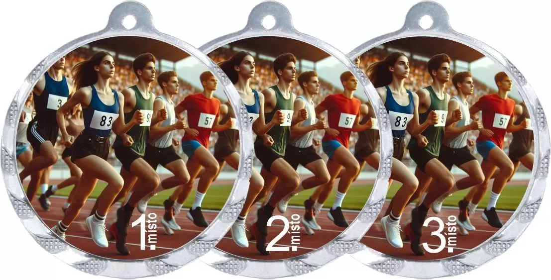 Sportovní medaile s možností emblému 5 cm na zadní stranu medaile a stuhy.