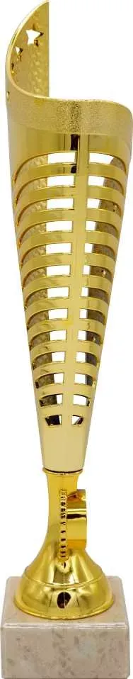 Sportovní pohár v oridinálním designu v horní i boční části lemovaný hvězdičkami ve zlatém provedení s možností emblému 2,5cm a štítku na mramorovém podstavci.