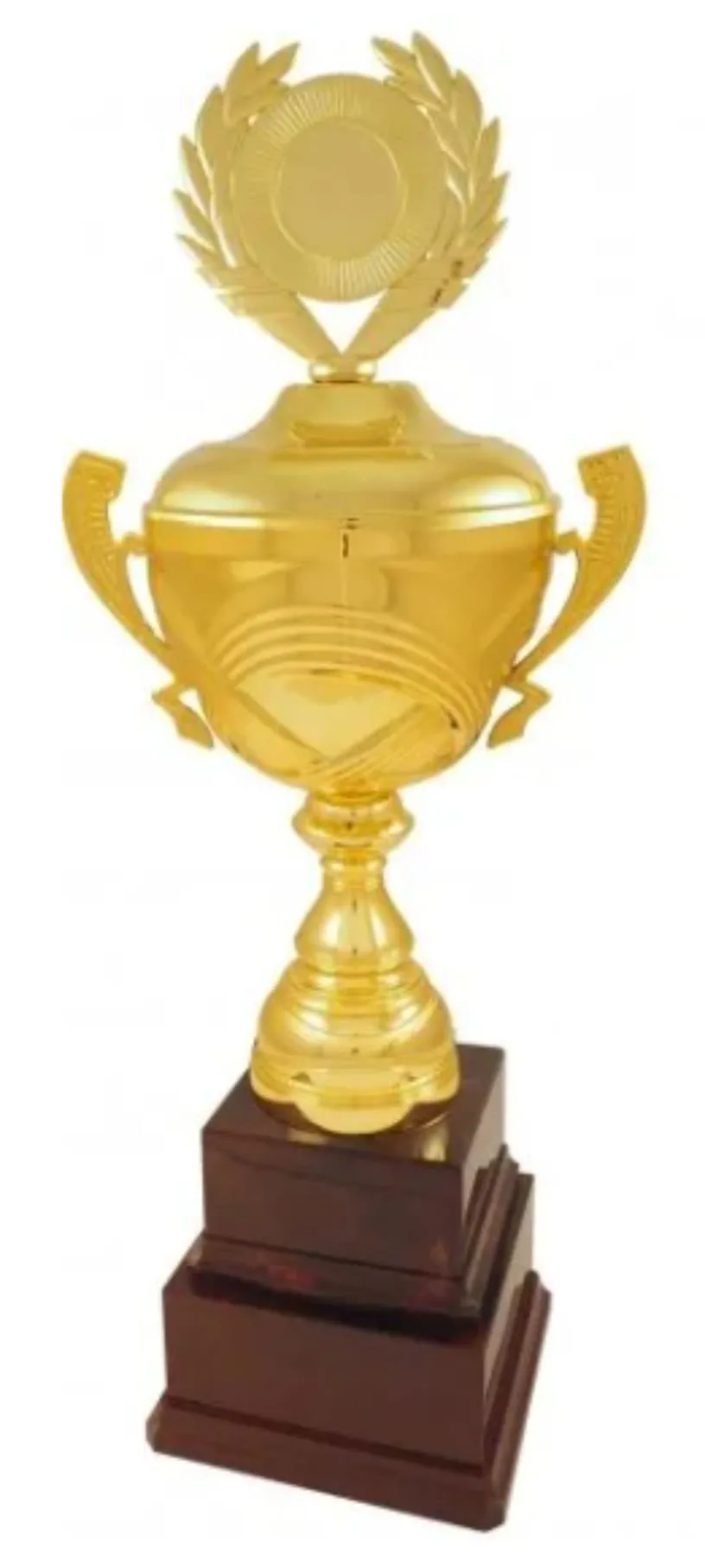 Sportovní putovní pohár s dvojitým mramorem s možností průběžného doplňování štítků ve zlaté barvě a emblému 5 cm do poháru.