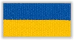 Stuha včetně karabinky v modro-žlutém provedení.